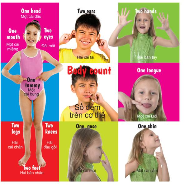 Điểm cộng của bộ sách này còn là yếu tố song ngữ Anh - Việt hấp dẫn, giới thiệu những từ vựng, hình ảnh, kiến thức cơ bản, gần gũi đầu tiên dành cho bé.