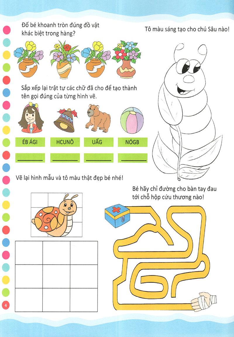 Quyển sách, có tô màu, có tính toán, có vẽ tranh, có trò chơi tìm đồ vật cất giấu, nối hình cho những sự vật hiện tượng có liêu quan, có tư duy logic… Bé từ đó được làm các dạng trò chơi khác nhau để phát triển về tư duy. Thông qua các trò chơi tư duy này, bạn có thể giúp bé rèn luyện trí não một cách tốt nhất, giúp bé biết hệ thống, luôn tự tin và biết cách xử lý các tình huống một cách nhạy bén hơn.