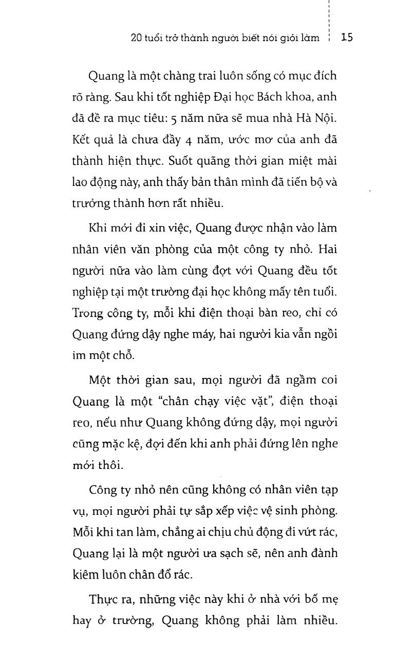 Quan trọng hơn hết, cuốn sách hướng đến rèn luyện cho các bạn trẻ vừa rời khỏi giảng đường đại học một phong thái đĩnh đạc, đúng mực, thái độ cầu tiến, khiêm tốn và khả năng cân bằng cảm xúc trong mọi hoàn cảnh. Có như vậy, sự nhiệt tình và năng động của bạn mới phát huy hiệu quả trong công việc và cuộc sống.