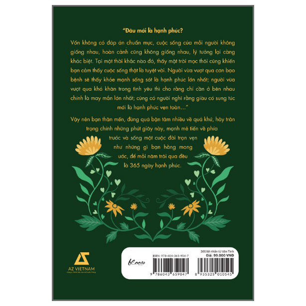 365 lời nhắn từ Vãn Tình - Chúc các bạn hạnh phúc như ý! VÃN TÌNH là nhà biên kịch - tác giả. Các tác phẩm của Vãn Tình đều thẳng thắn, trực diện, đánh trúng tâm lý của các cô gái. Ở Việt Nam, Vãn Tình được coi như “nữ hoàng” của dòng sách cảm hứng sống dành cho phái nữ. Cuốn sách Bạn đắt giá bao nhiêu? của cô đã tạo nên một làn sóng mạnh mẽ nhằm cổ vũ tinh thần, thay đổi quan điểm hạnh phúc của mọi độc giả. 365 lời nhắn từ Vãn Tình (Chúc các bạn hạnh phúc như ý) là cuốn sách chứa đựng những tâm tình, sẻ chia ngắn gọn nhưng thực tế và sâu sắc của tác giả, với mong muốn giúp bạn luôn mạnh mẽ, tự tin và độc lập để có thể sống một cuộc đời trọn vẹn yêu thương.