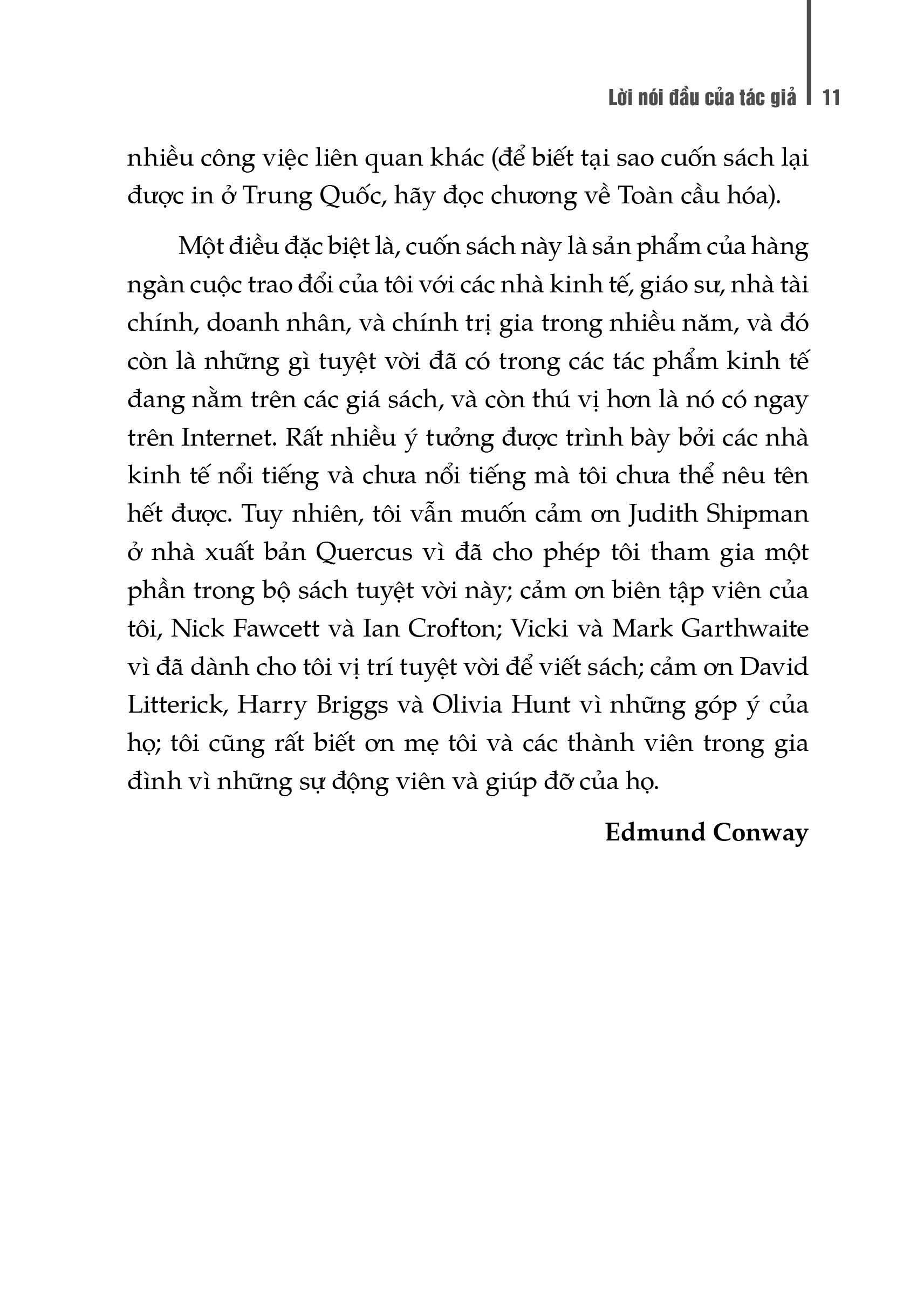 Một điều đặc biệt là, cuốn sách này là sản phẩm của hàng ngàn cuộc trao đổi của tác giả với các nhà kinh tế, giáo sư, nhà tài chính, doanh nhân, và chính trị gia trong nhiều năm, và đó còn là những gì tuyệt vời đã có trong các tác phẩm kinh tế đang nằm trên các giá sách, và còn thú vị hơn là nó có ngay trên Internet. Các ý tưởng khác nhau của các nhà lý luận kinh tế trình bày trong cuốn sách này tập trung phản ánh các quan điểm, lập luận của họ về các nội dung kinh tế của nhiều trường phái khác nhau, đôi khi là đối chọi nhau, không bị ràng buộc bởi các hệ tư tưởng chính trị. Cách trình bày khách quan như vậy sẽ là tài liệu tham khảo giúp độc giả có cái nhìn đa dạng về các hiện tượng kinh tế đã và đang diễn ra rất nhanh trên bình diện thế giới.