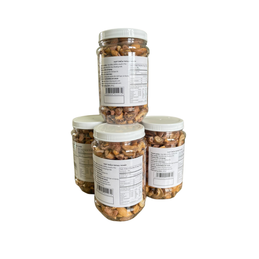 - Đặt hàng ngay, giao hàng liền tay. CHI TIẾT SẢN PHẨM 1/ Thành phần sản phẩm: hạt điều 99.%, muối 1% muối 2/ Thành phần dinh dưỡng: Nhân điều chứa nhiều giá trị dinh dưỡng: chất đạm, chất béo, chất khoáng, năng lượng, thành phần xơ giúp giảm cholesterol từ thực phẩm ăn vào. GIÁ TRỊ DINH DƯỠNG TÍNH TRÊN 100 g Năng lượng 629 Kcal ± 20% Protein 21,9 g ± 20% Chất béo 49,0 g ± 20% Carbohydrate 25,1 g ± 20% Vitamin E 1,54 mg ± 20% 3/ Tác dụng nổi bật đối với sức khỏe: ️ Hạt điều rang không sử dụng dầu chiên, không cholesterol rất tốt cho tim mạch. ️ Trong hạt điều có proanthocyanidins ️ Hạt điều chứa chất béo không no bão hòa đơn, ăn hạt điều hỗ trợ giảm cân ở phụ nữ, rất tốt cho phụ nữ mang thai. ️ Ngoài ra hạt điều chứa nhiều chất khoáng như Sắt, kẽm, magie giúp xương chắc khỏe. ️ Ăn hạt điều giúp giảm căng thẳng, cải thiện chức năng não. ️ Chăm sóc da mịn màng. 4/ Đối tượng khuyên dùng: ️ Mẹ bầu trên 3 tháng hoặc đang cho con bú ️ Trẻ em giai đoạn phát triển ️ Người bị tim mạch và có tiền sử tim mạch, người lớn tuổi ️ Người bị tiểu đường, béo phì và thừa cân ️ Phụ nữ làm đẹp và giai đoạn mãn kinh ️ Các thanh niên tập luyện thể dục thể thao cần nhiều năng lượng ️ Người làm việc nhiều, cần ăn hạt điều để bổ sung dưỡng chất cho trí não, giúp cải thiện trí nhớ, giảm mệt mỏi căng thẳng 5/ Bạn có thể tìm mua HẠT ĐIỀU LỤA RANG MUỐI SẠCH VỎ LỤA THƠM, GIÒN, BÉO ở đâu? Hạt điều loại A được tuyển chọn, rang muối và đóng gói cẩn thận, hút chân không, đảm bảo độ giòn và mới từ Dương Cát. Hạt điều thơm ngon, giòn rụm, không chứa hạt ỉu. Không cholesterol, không chất bảo quản, không hóa chất độc hại. Mỗi ngày bạn nên sử dụng 30gr (khoảng 16-18) hạt điều sẽ cung cấp cho cơ thể hàm lượng calo cần thiết.