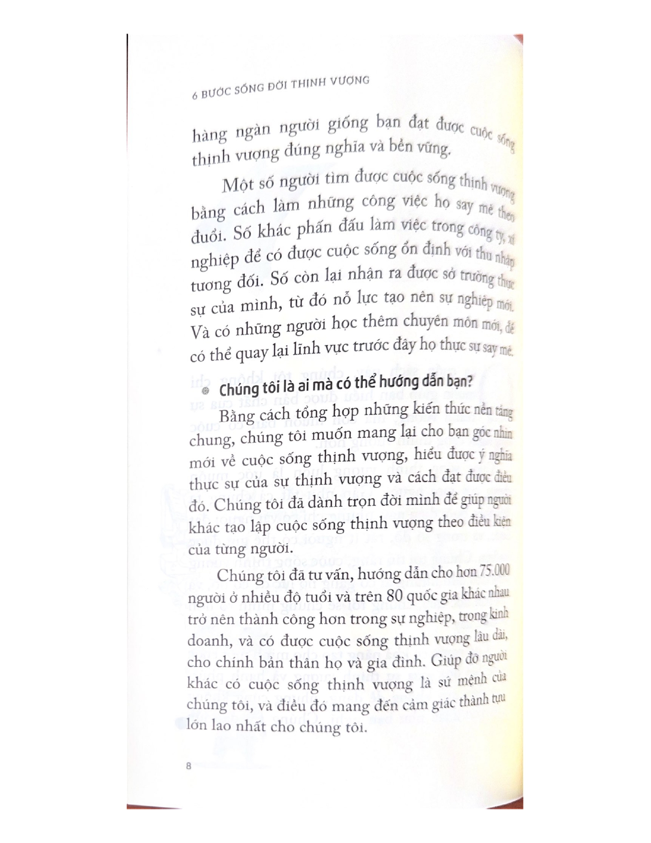 6 Bước Sống đời thịnh vượng chia sẻ sáu bước thực hành giúp bạn tạo ra kế hoạch cá nhân hướng đến cuộc sống thịnh vượng, vốn dựa trên những mục tiêu và khát vọng sâu thẳm nhất trong lòng bạn – một kế hoạch bền vững qua thời gian. Bạn không chỉ thành công – bạn sẽ thực sự thịnh vượng.