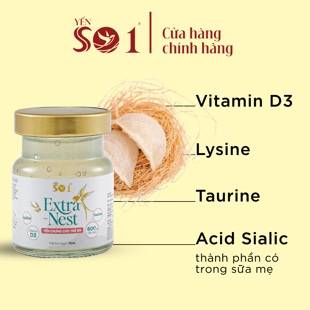 [Yến Số 1 Hũ 70ml] Yến chưng sẳn dành cho trẻ em, Yến tươi 600mg yến thật, bổ sung vitamin D3. CON KÉN ĂN KHÔNG NẠP ĐỦ CHẤT DẪN ĐẾN CƠ THỂ ỐM YẾU. LÀM THẾ NÀO ĐỂ GIÚP CON BỔ SUNG DINH DƯỠNG MỖI NGÀY? Khi con bạn không muốn ăn hoặc chỉ ăn rất ít. Mỗi bữa ăn trở thành một cuộc chiến đầy căng thẳng, khiến bạn cảm thấy lo lắng và bất lực. Hình ảnh của con nhỏ bé, ốm yếu không có đủ năng lượng để tham gia vào các hoạt động vui chơi và học tập, thực sự làm bạn buồn phiền, không biết phải làm thế nào để cải thiện tình hình. Ăn Yến sào là một trong những phương pháp có từ ngàn xưa giúp bổ sung dinh dưỡng nhanh nhất, an toàn và đã được công nhận là cực kỳ hiệu quả đối với thể trạng yếu ớt. Ngoài ra, Yến sào được các nhà khoa học chứng minh có chứa Acid Sialic - thành phần tự nhiên có trong sữa mẹ, giúp tăng cường hệ miễn dịch và phát triển não bộ cho trẻ. ️ Yến Số 1 tự hào về sự ưu ái của thiên nhiên khi Việt Nam là một trong những nơi phù hợp nhất để nuôi Yến trên Thế Giới. Chúng mình có những trại nuôi Yến chất lượng và có nguồn gốc rõ ràng. Từ quy trình chế biến đến ra thành phẩm, Yến Số 1 tuân thủ nghiêm ngặt quy trình vệ sinh an toàn thực phẩm, đảm bảo sản phẩm luôn đạt chất lượng cao nhất cho mỗi hũ Yến. Ngoài ra, Yến Số 1 hiểu rằng trẻ em đang ở độ tuổi phát triển do đó mỗi hũ Yến chưng sẵn đều được bổ sung D3, Lysine, và Taurine - những thành phần quan trọng trong việc phát triển sức khỏe của trẻ nhỏ. Với hũ Yến chưng sẵn này, bạn không cần phải lo lắng về việc chưng yến và có nhiều thời gian chăm lo cho bản thân và gia đình. MUA NGAY YẾN SỐ 1 CHO BÉ DÙNG NHÉ! THÔNG TIN SẢN PHẨM: Thương hiệu: Yến Số 1. Xuất xứ: Việt Nam. Quy cách đóng gói: Đóng trong hũ thủy tinh tiệt trùng hút chân không dung tích 70ml, lớp ngoài là hộp giấy cứng. Ngày sản xuất: Xem trên bao bì sản phẩm. Hạn sử dụng: 24 tháng kể từ ngày sản xuất. HƯỚNG DẪN SỬ DỤNG: Trẻ em trên 1 tuổi: 2 ngày 1 hũ. Trẻ em từ 3 tuổi trở lên: 1 ngày 1 hũ. KHÔNG SỬ DỤNG cho trẻ dưới 1 tuổi. HƯỚNG DẪN BẢO QUẢN Bảo quản nơi khô thoáng, tránh ánh nắng mặt trời hoặc ngăn mát tủ lạnh. Ngon hơn khi dùng lạnh. CAM KẾT VÀ CHÍNH SÁCH CỦA YẾN SỐ 1 Tuyệt đối an toàn cho sức khỏe của trẻ nhỏ. Không pha trộn tạp chất, mủ trôm. Không chất bảo quản có hại. Không dùng đường, muối để vệ sinh tổ Yến. Không sử dụng các chất tẩy trắng, làm màu. Đổi trả trong vòng 7 ngày và bảo hành 1 đổi 1 nếu có lỗi do nhà sản xuất.