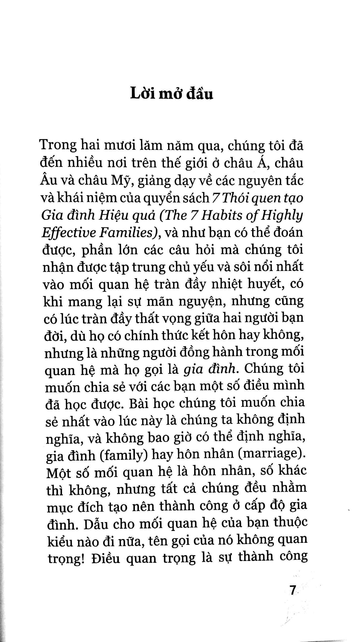 7 Thói quen hôn nhân hạnh phúc giúp bạn đọc vun đắp ba điều trên thông qua những bài học về nguyên lý và tạo thói quen hiệu quả được trình bày theo dạng 7 Thói quen quen thuộc: