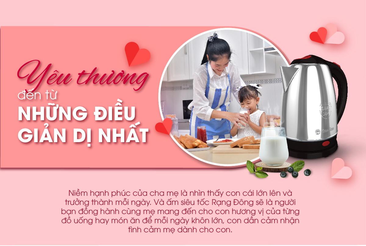 Ấm siêu tốc 1.8 lít Rạng Đông thân inox 304 cao cấp có thể dùng làm quà tặng