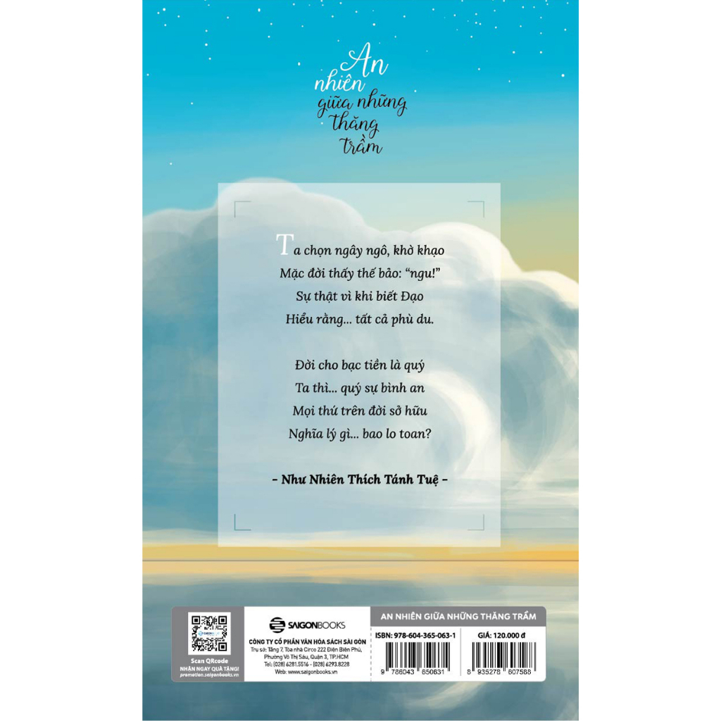 Thật hoan hỷ khi giữa cuộc đời chênh vênh, huyên náo này có một tâm hồn thiền vị, sống chan hòa vì đời vì đạo, miệt mài chuyên chở những tặng phẩm yêu thương giúp chuyển hóa nỗi khổ niềm đau của nhân sinh. Thật may mắn cho tất cả những ai có đủ duyên cầm trên tay cuốn sách An nhiên giữa những thăng trầm này, bởi mỗi trang sách sẽ như ngọn đèn soi sáng lòng ta, giúp ta tự tìm thấy và nuôi dưỡng sự bình an đích thực, vĩnh cửu.
