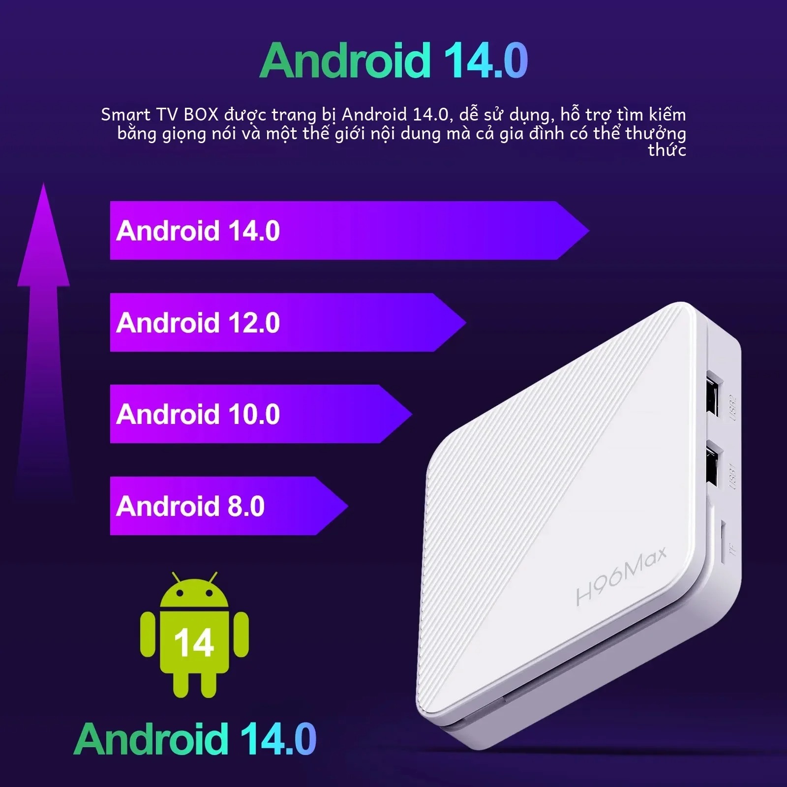 ●HỆ ĐIỀU HÀNH: Android 14 - Khả Năng Tương Thích Tuyệt VờiThích nghi với các hệ điều hành Android 14, android tivi box H96 Max là tương thích với nhiều phần mềm, trò chơi và các ứng dụng, cải thiện trải nghiệm của người dùng●RAM 2 GB /ROM 8 GBRAM 2 GB bộ nhớ rất nhiều của thiết bị. Hỗ trợ thẻ TF lên đến 32 GB