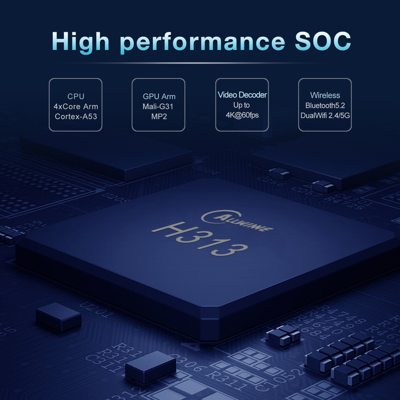 - Sử dụng con chip CPU Allwin H313 cực mạnh
