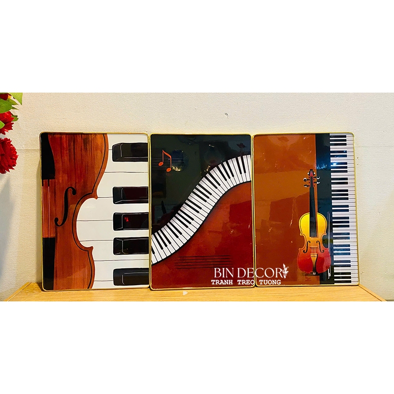 Tranh treo tường trang trí decor âm nhạc 25 - Kích thước của tranh : Kích thước : 25x35cmx3 tấm - 30x45cmx3 tấm - 40x60cmx3 tấm - Chất liệu : Tráng gương - kim sa