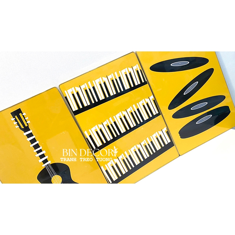 Tranh treo tường trang trí decor âm nhạc 8 - Kích thước của tranh : Kích thước : 25x35cmx3 tấm - 30x45cmx3 tấm - 40x60cmx3 tấm - 50x70cmx3 tấm - Chất liệu : Tráng gương