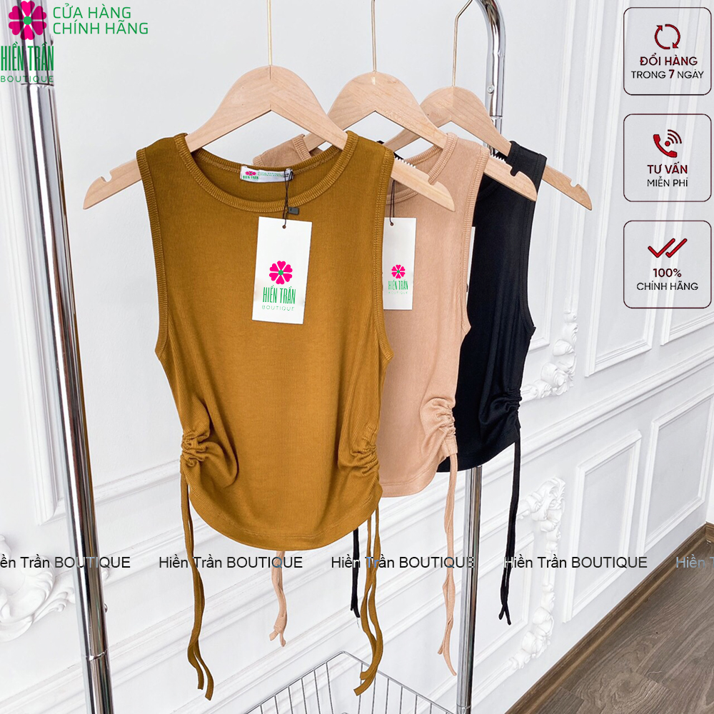 ✨Áo croptop nữ Hiền Trần BOUTIQUE chất thun tăm kiểu ôm body rút dây 2 bên trơn co giãn thoáng mát freesize ngắn tay thun đẹp