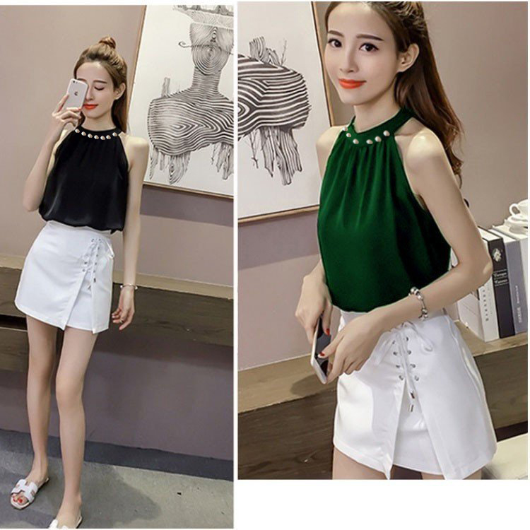 - -New Design chuyên hàng thiết kế những mẫu chân váy đẹp, mới lạ, thanh lịch công sở, văn phòng, hẹn hò đều đẹp.Nay Shop giới thiệu cùng bạn mẫu Áo hai dây ngọc trai cổ yếm trẻ trung, cá tính, tôn dáng, sáng da.