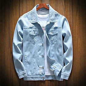 Mua tại TiktokÁo Khoác Jean Nam Rách Chất Liệu : Vải Jean Size : M từ 45- 53kg Size L: từ 54-58kg Size XL từ 58-67kg