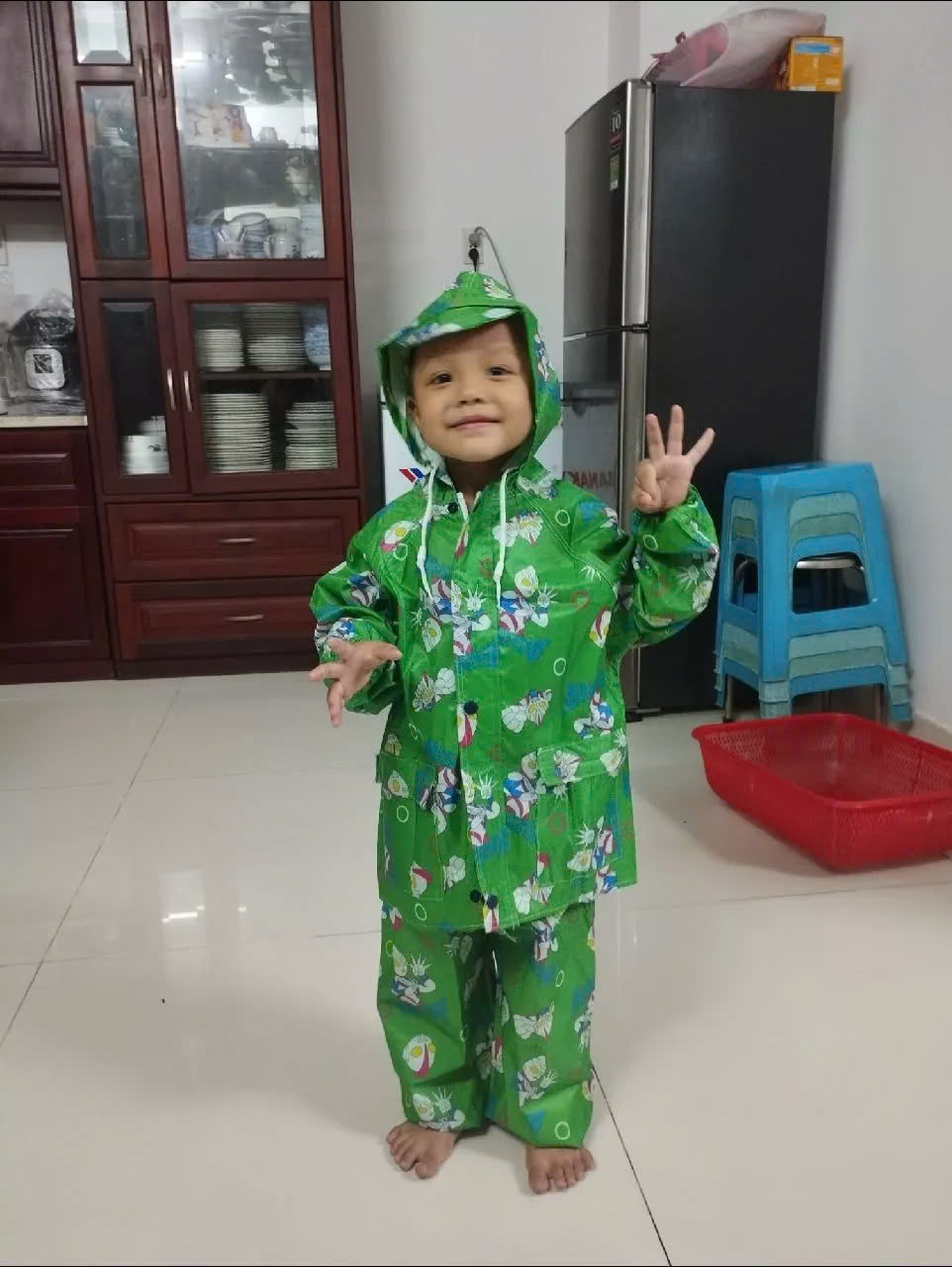 - Áo mưa bộ cho trẻ từ 3 - 5 tuổi , vải dù cao cấp ,siêu bền , chống thấm nước , có túi đựng xinh xắn , nhỏ gọn dễ mang theo mọi
