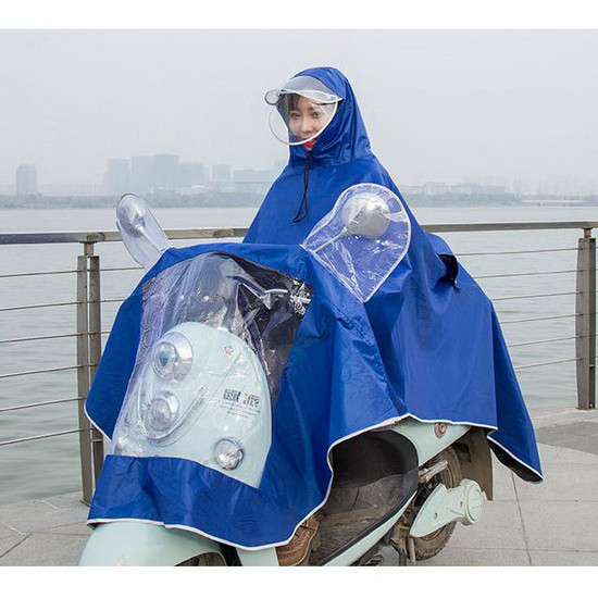 Áo mưa che phủ toàn thân tiện lợi có kính che mặt, nửa trước trong suốt, chất liệu PVC dẻo, dai