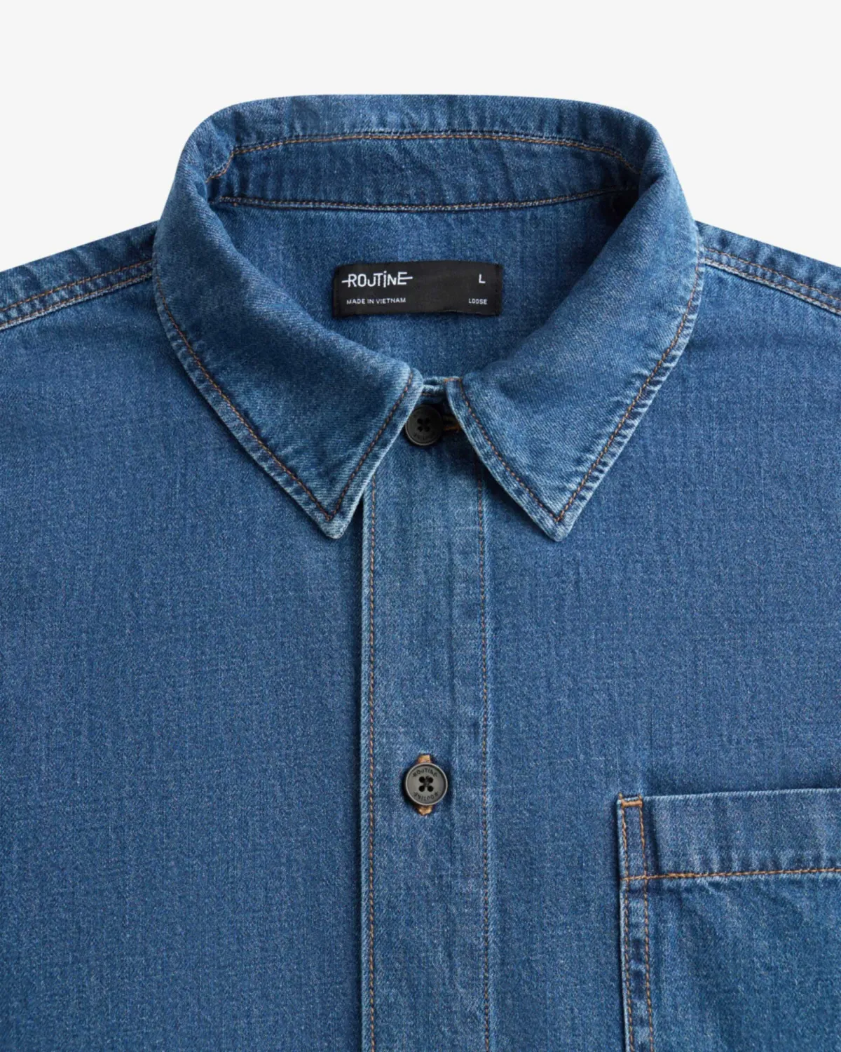 Áo Sơ Mi Jean Unisex ROUTINE 100% Cotton Trơn Form Loose - 10S24DSHU001R1 | LASTORE MENSWEAR ĐẶC ĐIỂM NỔI BẬT Nhóm sản phẩm Áo Sơ Mi Form dáng Loose Giới tính Unisex Chất liệu 100%