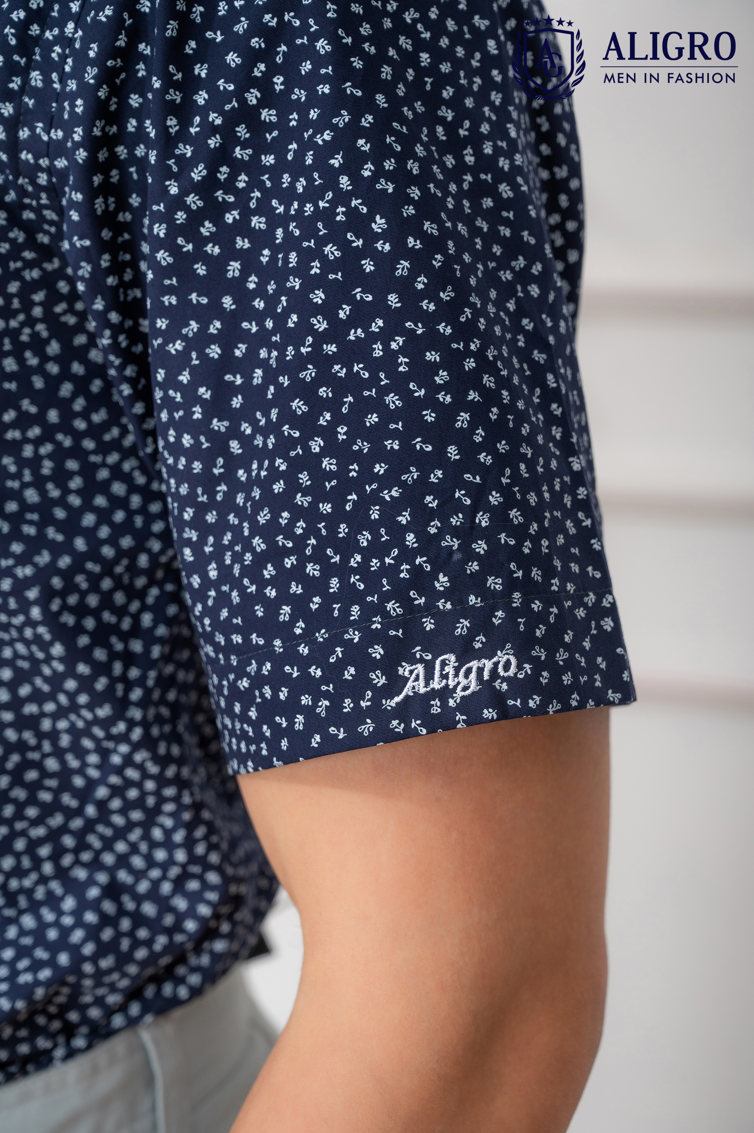 ÁO SƠ MI NAM CỘC TAY XANH HỌA TIẾT HOA NHỎ ALIGRO ALGSC88