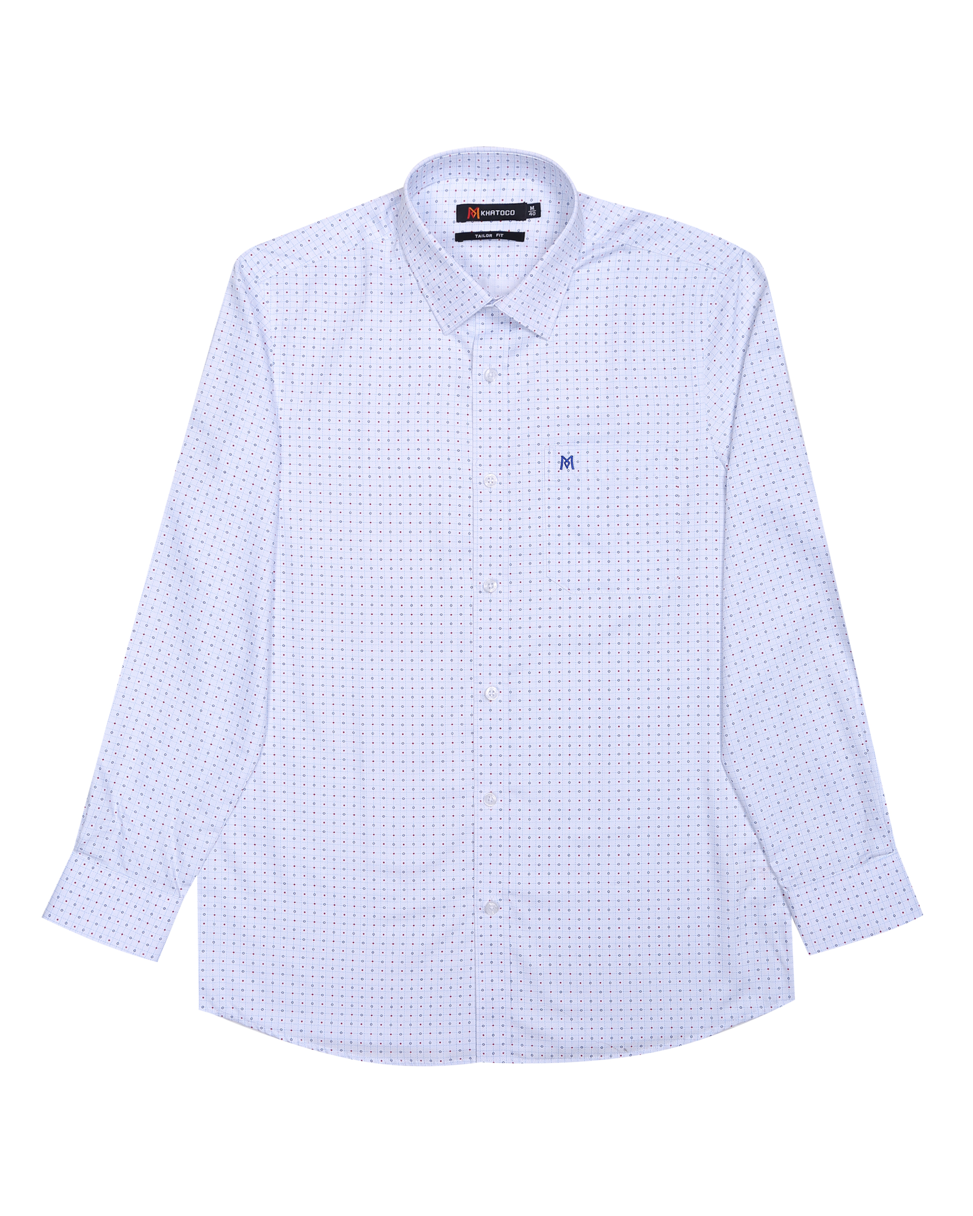 (V) MÔ TẢ: Form Taylor, tai dài Form áo tiêu chuẩn với form áo rộng vừa phải, không ôm sát cơ thể, bó nhẹ ở vùng eo và tay áo. Độ rộng vùng ngực và nách cũng sẽ fit hơn với cơ thể. Không quá rộng như form áo cổ điển. Màu vải nhã nhặn và trung tính dễ dàng phối trang phục tạo sự lịch lãm, nam tính Nút ton-sur-ton khắc logo đẹp mắt phối trọn vẹn màu áo. Logo thêu sắc nét trên túi áo. Chất liệu:50%POLYESTER- 24%COTTON-2%SPANDEX- 24%VISCOSE(BAMBOO) |Mềm mịn|Thấm hút |Kháng khuẩn|Độ thoáng khí cao|Chống tia UV|Chống nhăn|Chống co rút |Nhanh khô|Dễ vệ sinh làm sạch|Đứng phom áo Màu sắc : Màu Xanh họa tiết