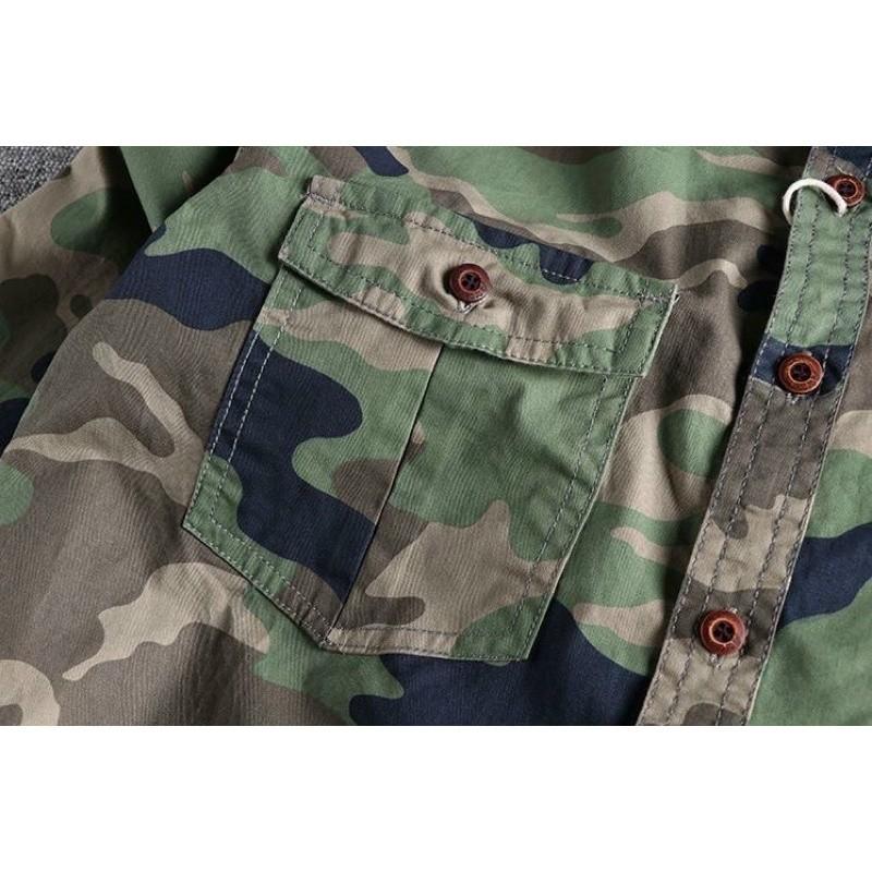 Áo sơ mi Retro túi hộp ngắn tay lính_dã ngoại Áo sơ mi quân đội Wild Casual Chất kaki được wash acid cực bụi , phom chuẩn mặc rất đẹp ạ Model thế hệ mới
