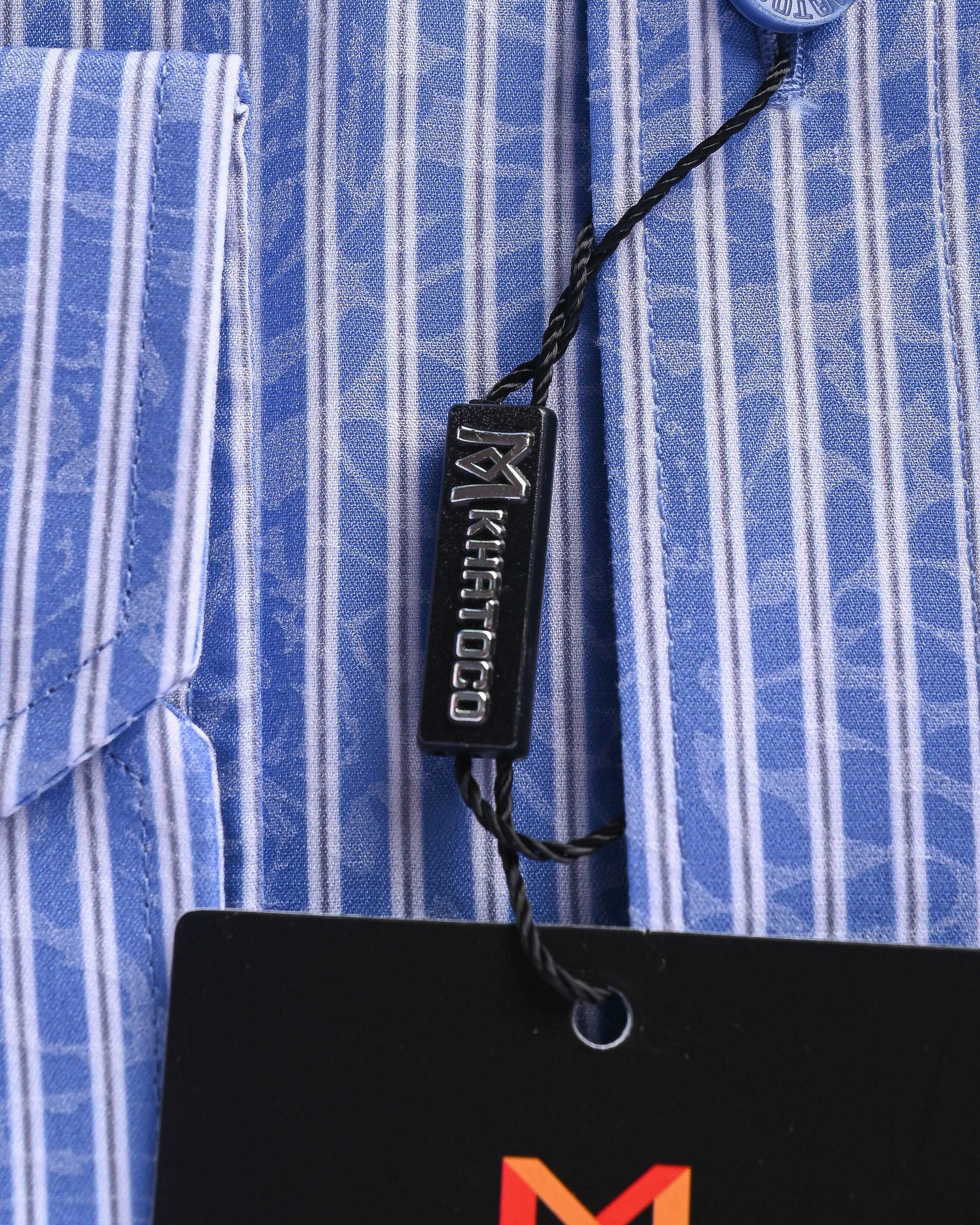 (V) MÔ TẢ: Form Taylor, tai dài Form áo tiêu chuẩn với form áo rộng vừa phải, không ôm sát cơ thể, bó nhẹ ở vùng eo và tay áo. Độ rộng vùng ngực và nách cũng sẽ fit hơn với cơ thể. Không quá rộng như form áo cổ điển. Màu vải nhã nhặn và trung tính dễ dàng phối trang phục tạo sự lịch lãm, nam tính Nút ton-sur-ton khắc logo đẹp mắt phối trọn vẹn màu áo. Logo thêu sắc nét trên túi áo. Chất liệu:50%POLYESTER- 24%COTTON-2%SPANDEX- 24%VISCOSE(BAMBOO) |Mềm mịn|Thấm hút |Kháng khuẩn|Độ thoáng khí cao|Chống tia UV|Chống nhăn|Chống co rút |Nhanh khô|Dễ vệ sinh làm sạch|Đứng phom áo Màu sắc : Màu Xanh họa tiết