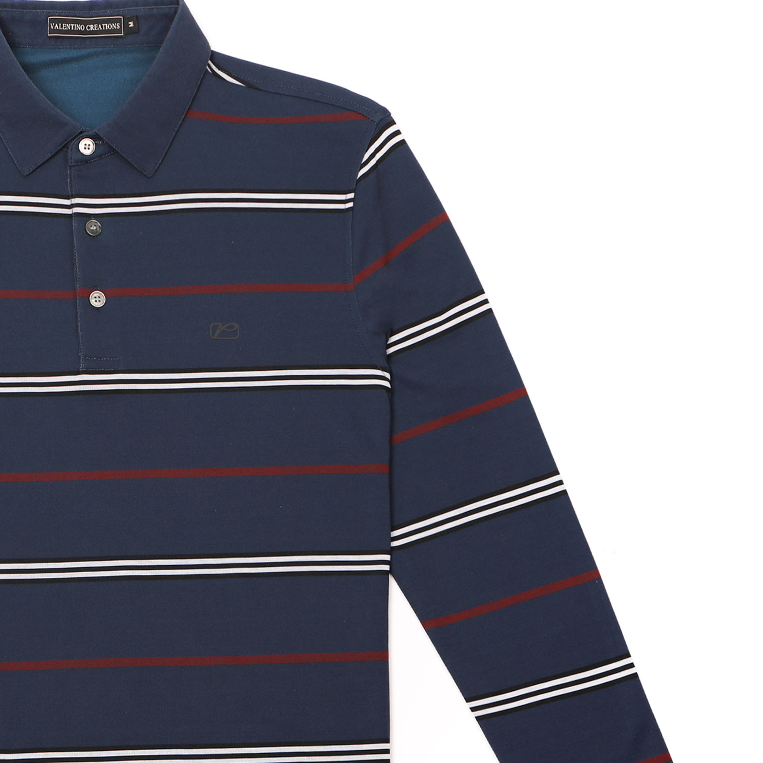 Áo Polo Nam VIỆT PHÁP Form Luxury - Thun 4 Chiều Sọc Túi Dài Tay, lịch lãm, sang trọng 23002  Áo Thun Polo Tay Dài Valentino Creations - VLST-22002-B-BL2