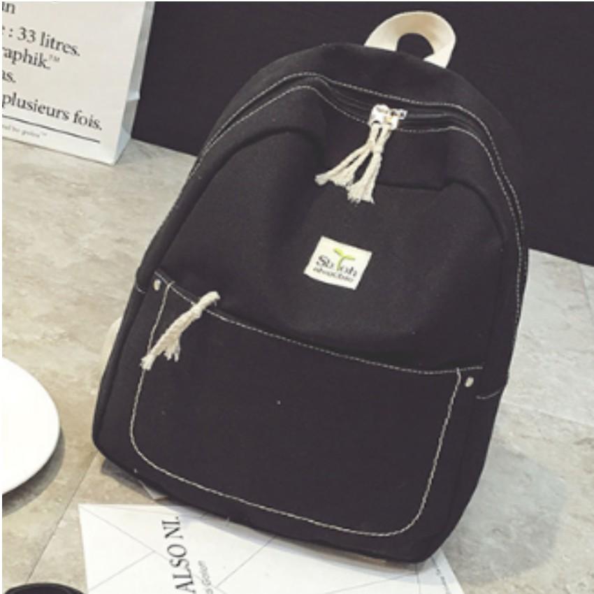 ✨️️ Ba Lô Canvas Sinh Viên Phong Cách Hàn Quốc 208069-1 (đen)