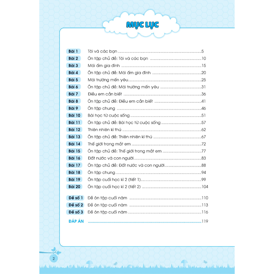 Cuốn sách cũng cung cấp 3 đề ôn tập cuối kì với thang điểm cụ thể, để các em tự ôn luyện và đánh giá đúng mức độ nắm kiến thức, chuẩn bị tốt kiến thức và tâm lý cho bài kiểm tra cuối kì trên lớp.
