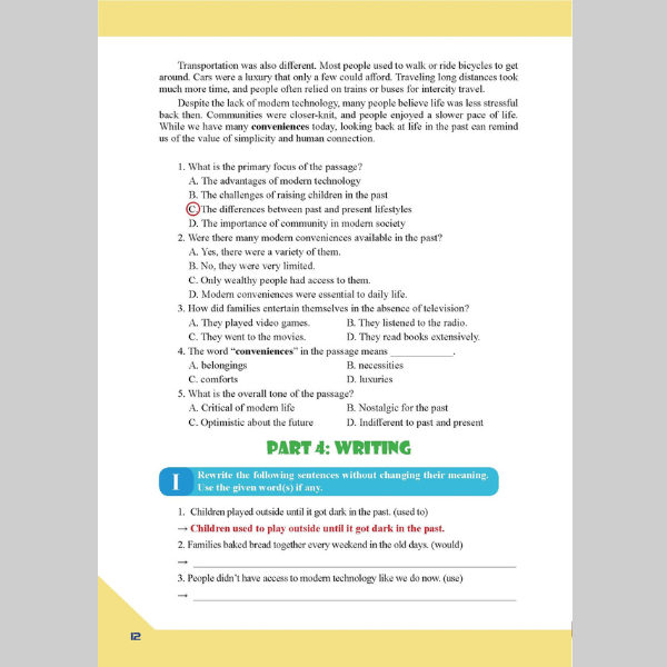 Đề Thi Tuyển Sinh Vào Lớp 10 Môn Tiếng Anh (Có Đáp Án) Tác giả: Trịnh Thanh Thủy Công ty phát hành: Zenbooks Nhà xuất bản: Thế giới Năm xuất bản: 2025 Giới thiệu về sách Đề Thi Tuyển Sinh Vào Lớp 10 Môn Tiếng Anh Đề Thi Tuyển Sinh Vào Lớp 10 Môn Tiếng Anh (Có Đáp Án) là tài liệu ôn luyện lý tưởng cho học sinh lớp 9 trong giai đoạn nước rút trước kỳ thi vào lớp 10. Cuốn sách tổng hợp các đề thi bám sát cấu trúc chính thức, giúp học sinh làm quen với dạng đề, nâng cao kỹ năng và tự tin bước vào kỳ thi quan trọng này. Nội dung nổi bật của sách - 28 đề thi cập nhật: Bao gồm 10 đề theo cấu trúc TP.HCM, 10 đề theo cấu trúc Hà Nội, và 8 đề thi thực tế từ 2020–2024. - Kiểm tra toàn diện: Đánh giá 5 kỹ năng: Ngữ âm, Từ vựng – Ngữ pháp, Đọc hiểu, Viết lại câu, và Viết luận (tự luận và trắc nghiệm). - Đáp án chi tiết: Hỗ trợ tự học, kiểm tra và đánh giá năng lực bản thân. - Phân chia theo vùng miền: Đáp ứng đặc thù đề thi của Hà Nội và TP.HCM, sát với thực tế. Điểm khác biệt của sách - Cập nhật mới nhất 2025: Phản ánh chính xác cấu trúc và xu hướng đề thi hiện tại. - Thực tiễn cao: Đề thi thực tế từ 2020–2024 giúp học sinh làm quen với áp lực thi thật. - Dễ sử dụng: Phù hợp cho tự học hoặc học cùng giáo viên/gia sư, với đáp án rõ ràng. - Uy tín biên soạn: Được đội ngũ giáo viên giàu kinh nghiệm của Zenbooks xây dựng cẩn thận. Đối tượng phù hợp Cuốn sách dành cho: - Học sinh lớp 9 ôn thi vào lớp 10, muốn nâng cao kỹ năng tiếng Anh. - Phụ huynh hỗ trợ con em ôn luyện hiệu quả cho kỳ thi quan trọng. -
