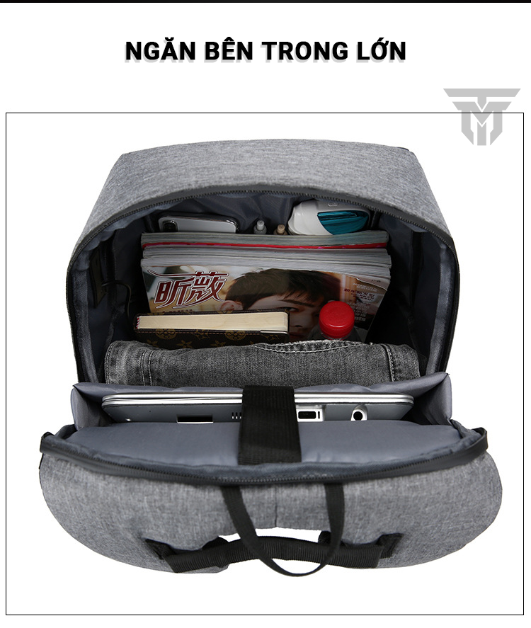 Balo có ngăn chính rộng rãi có thể chứa nhiều vật dụng cần thiết khi du lịch, công tác như tàI liệu, ví, điện thoại, máy tính bả ngoài ra, balo còn tích hợp ngăn chuyên dùng đựng laptop với lớp vải lót bên trong mềm mạI vừa bảo vệ bề mặt thiết bị tránh trầy xước, vừa an toàn khi có tác động của ngoại lực. Ngoài ra, 2 ngăn phụ nhỏ trang bị phía trước để cất trữ các vật dụng nhỏ, cần dùng trong hành trình như thẻ atm, tai nghe, thẻ giữ xe, các ngăn nhỏ bên trong giúp bạn đựng đIện thoại, bút viết, tiền lẻ, pin sạc dự phòng tiện lợi an toàn.