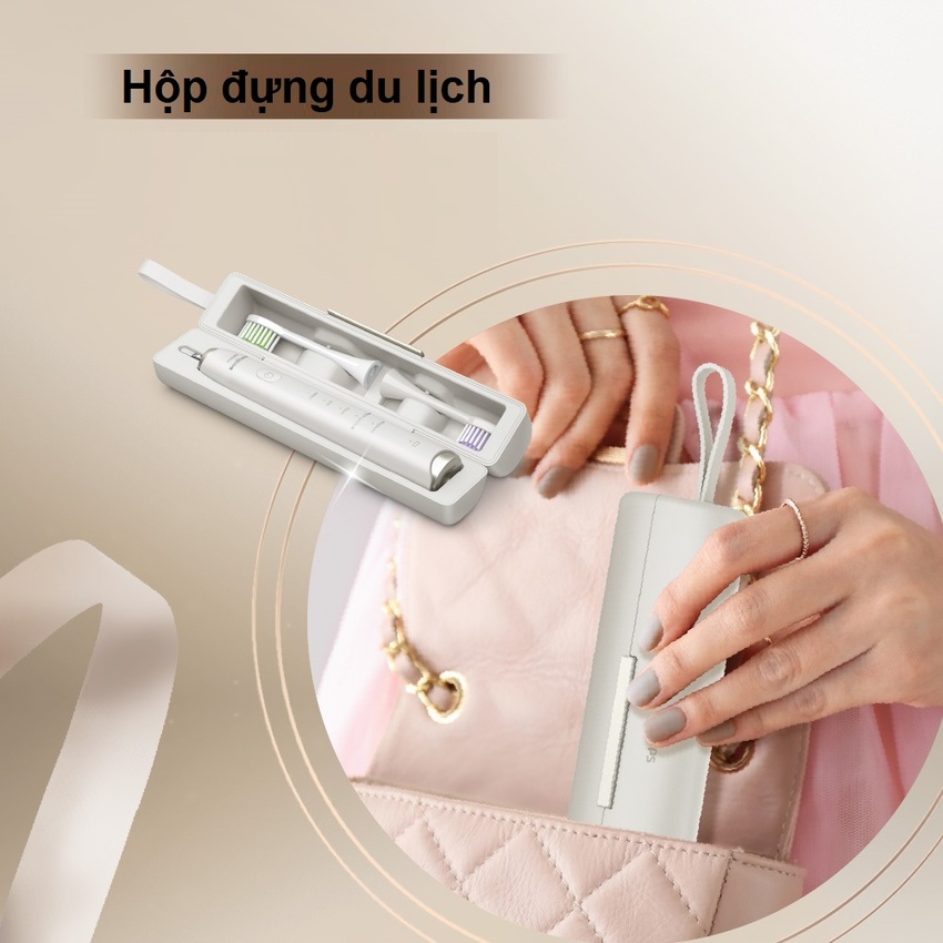 - Hộp du lịch cao cấp bảo quản bàn chải đánh răng và hai đầu bàn chải của bạn một cách hợp vệ sinh, trong khi đế sạc nhỏ của chúng tôi giúp bạn sạc pin khi đi du lịch. Bạn sẽ có hai tuần sử dụng bình thường chỉ với một lần sạc, nhưng bộ sạc luôn sẵn sàng cho bạn khi bạn đang thực hiện một chuyến đi dài Thông số kỹ thuật sản phẩm