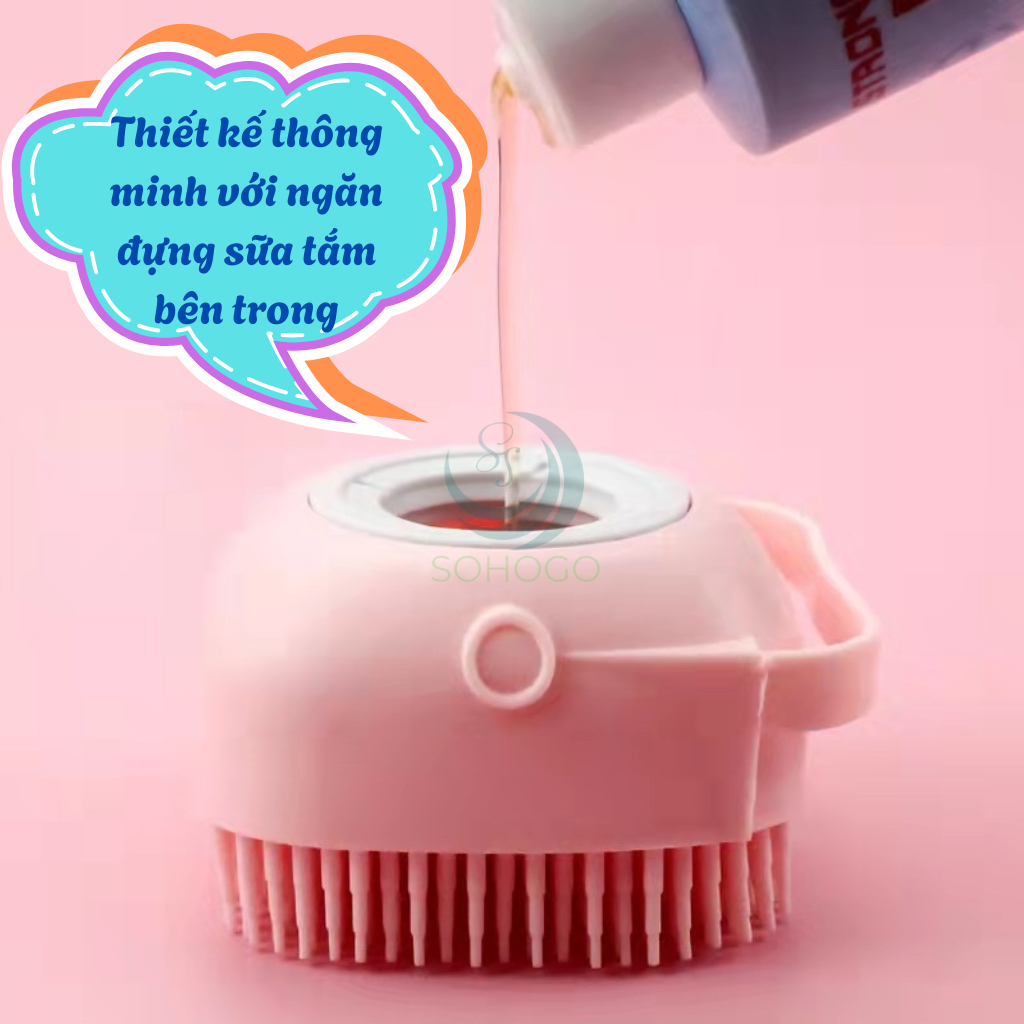 - Gai silicon mềm mại: Làm sạch sâu lỗ chân lông, loại bỏ tế bào chết, kích thích tuần hoàn máu, hỗ trợ thư giãn cơ thể khi tắm.