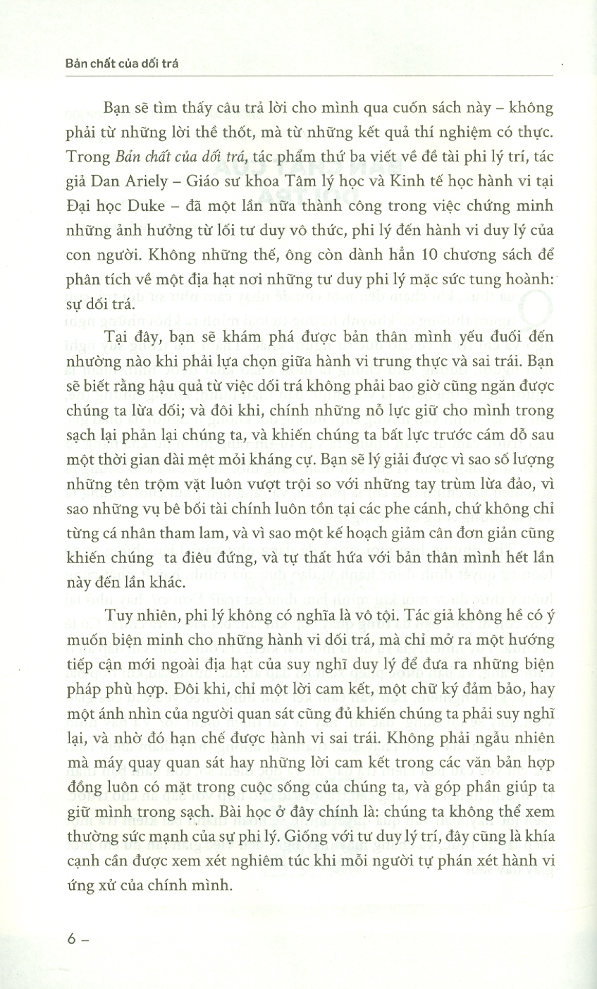 Với những phát hiện từ chính tác giả lẫn những phát hiện học thuật, cuốn sách sẽ thay đổi cách chúng ta nhìn nhận chính mình, hành động của bản thân và những người khác.