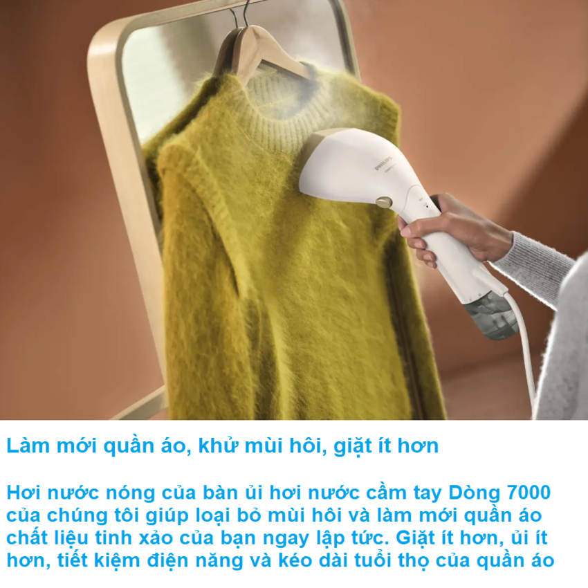- Hơi nước nóng của bàn ủi hơi nước cầm tay Philips STH7030/18, series 7000 ủa chúng tôi giúp loại bỏ mùi hôi và làm mới quần áo chất liệu tinh xảo của bạn ngay lập tức. Giặt ít hơn, ủi ít hơn, tiết kiệm điện năng và kéo dài tuổi thọ của quần áo! An toàn cho tất cả các loại vải ủi được, đảm bảo không gây ra vết cháy.
