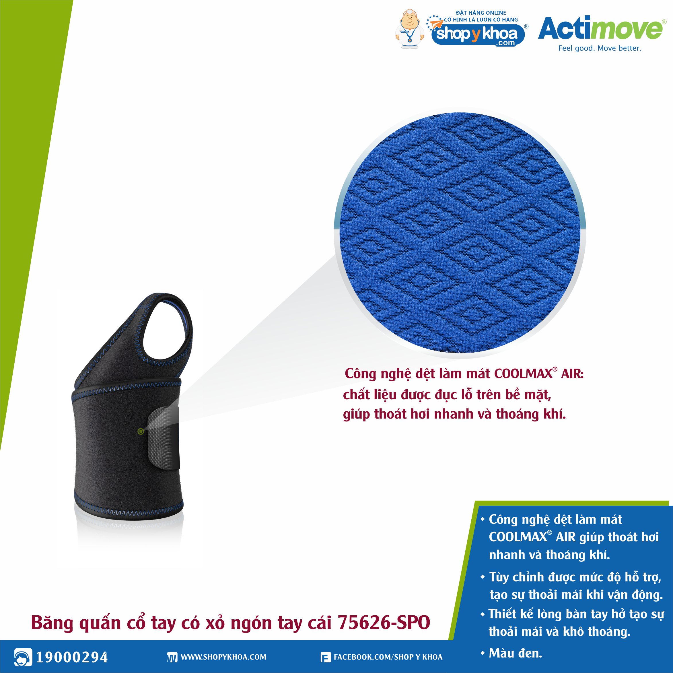 BĂNG QUẤN CỔ TAY CÓ XỎ NGÓN CÁI 75626-SPO ACTIMOVE WRIST SUPPORT Băng quấn cổ tay có xỏ ngón tay cái 75626-SPO hỗ trợ bền bỉ và tùy chỉnh cho các trường hợp cổ tay
