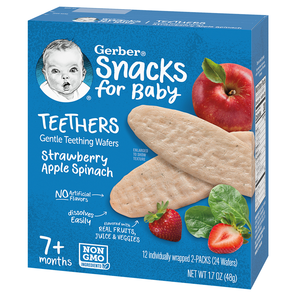 Bánh gạo Gerber vị Dâu Táo, Cải bó xôi 48g 7M+