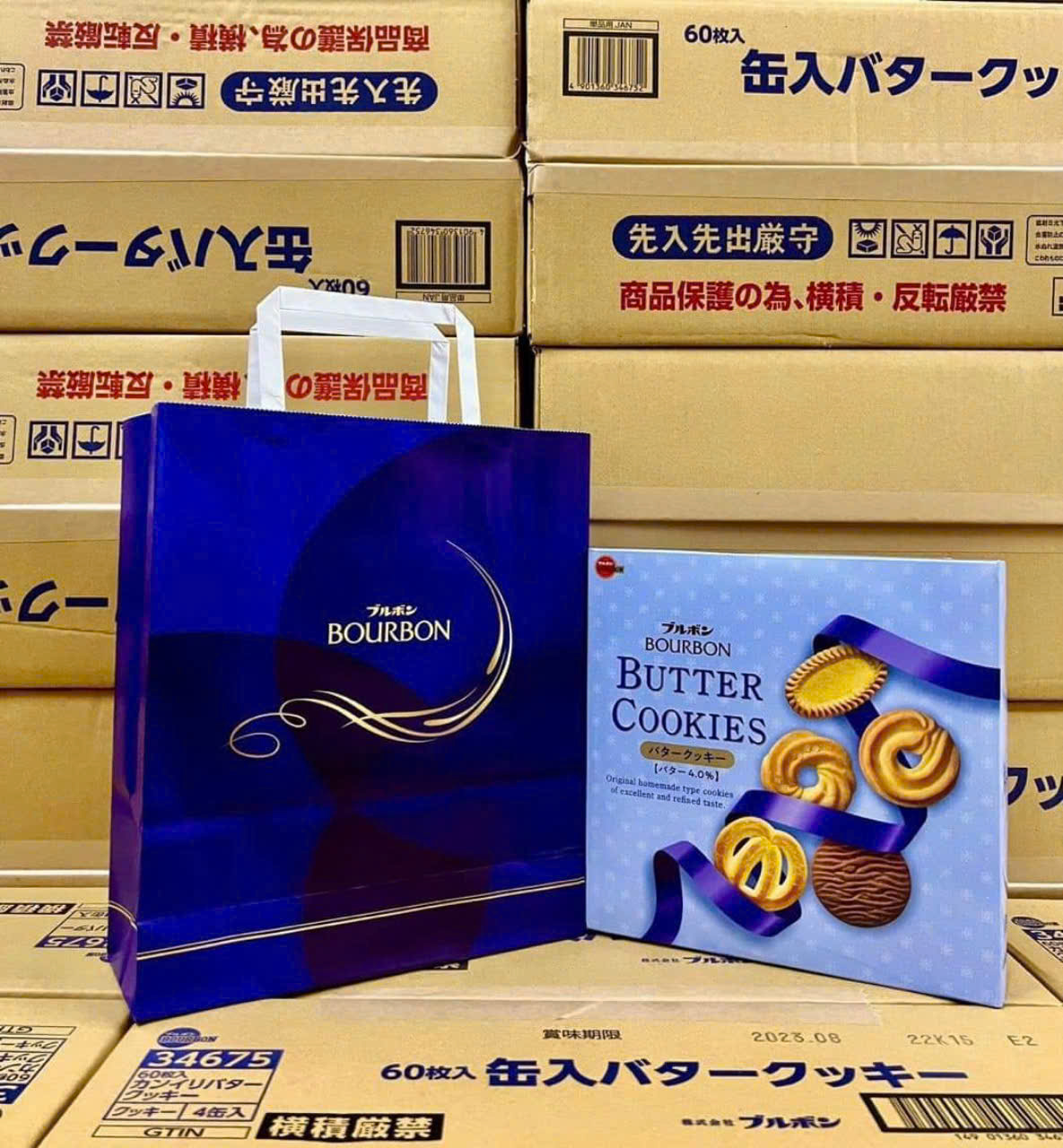Bánh quy bơ Bourbon là dòng bánh quy bơ truyền thống cao cấp của Nhật Bản. Bánh có sự kết hợp của nhiều loại hương vị khác nhau như: Chocolate, bơ, crepe, hạnh nhân, papira…trên nền