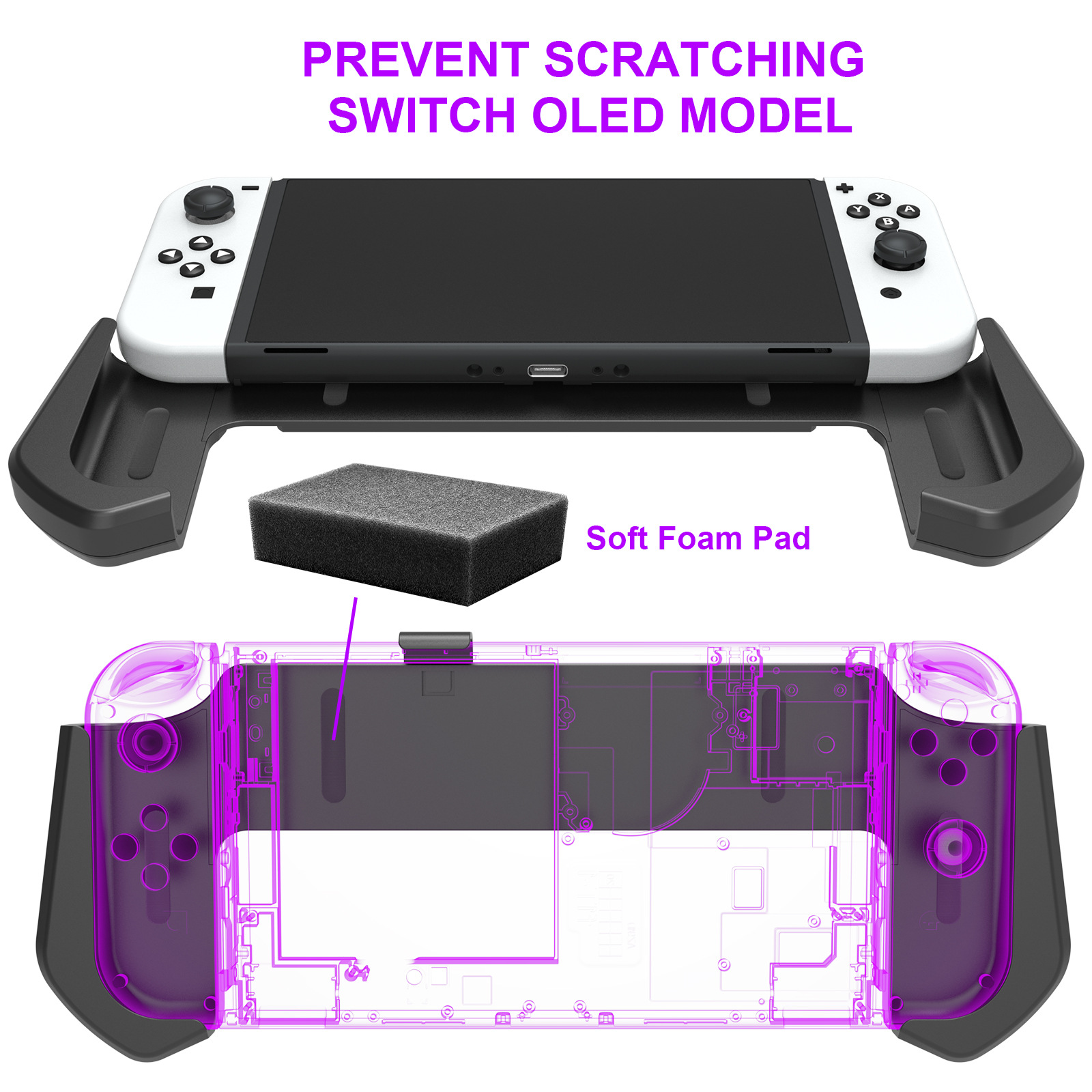 Case Switch OLED/Switch có thể được lắp trực tiếp vào đế bằng tay cầm để chiếu hoặc sạc màn hình, không cần tháo tay cầm ra khỏi bộ phận chính Thiết kế tay cầm đơn