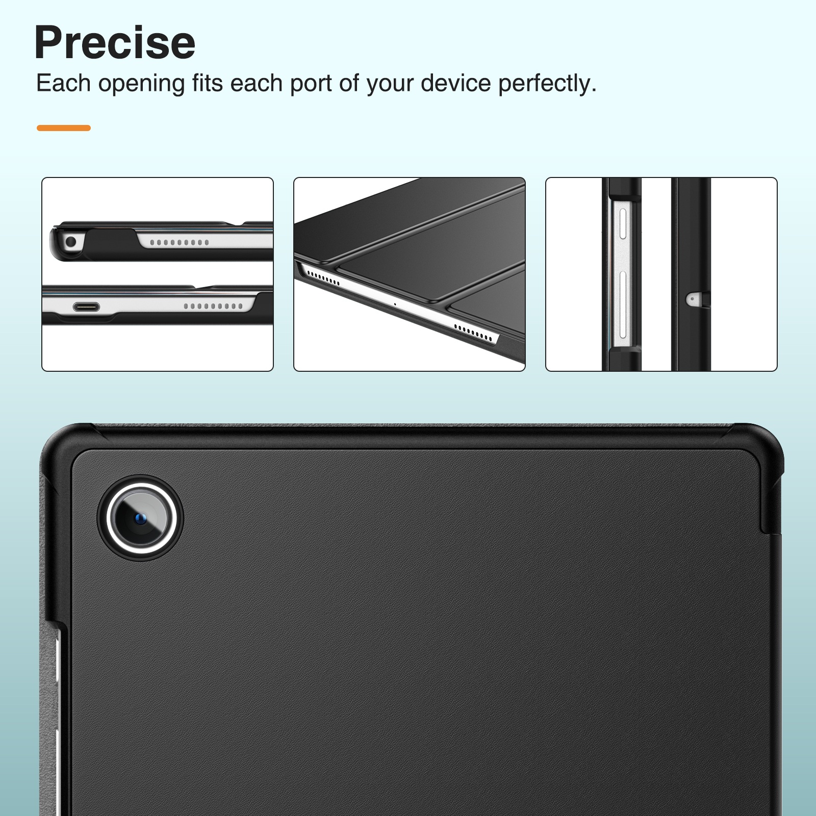 Bao da chống sốc siêu mỏng cho máy tính bảng Galaxy Tab A8 10.5 inch 2022 (SM-X200/X205/X207) Thiết kế giữ nguyên tỉ lệ 1:1 và các nút phím điều hướng, âm lượng, cổng sạc tương ứng của máy tính bảng, tiện lợi cho việc sử dụng.