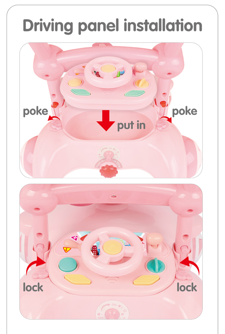Xe tập đi chắc chắn, màu sắc bắt mắt, giúp bé tập đi an toàn và tự tin. Tích hợp đồ chơi vui nhộn kích thích giác quan, hỗ trợ phát triển vận động và