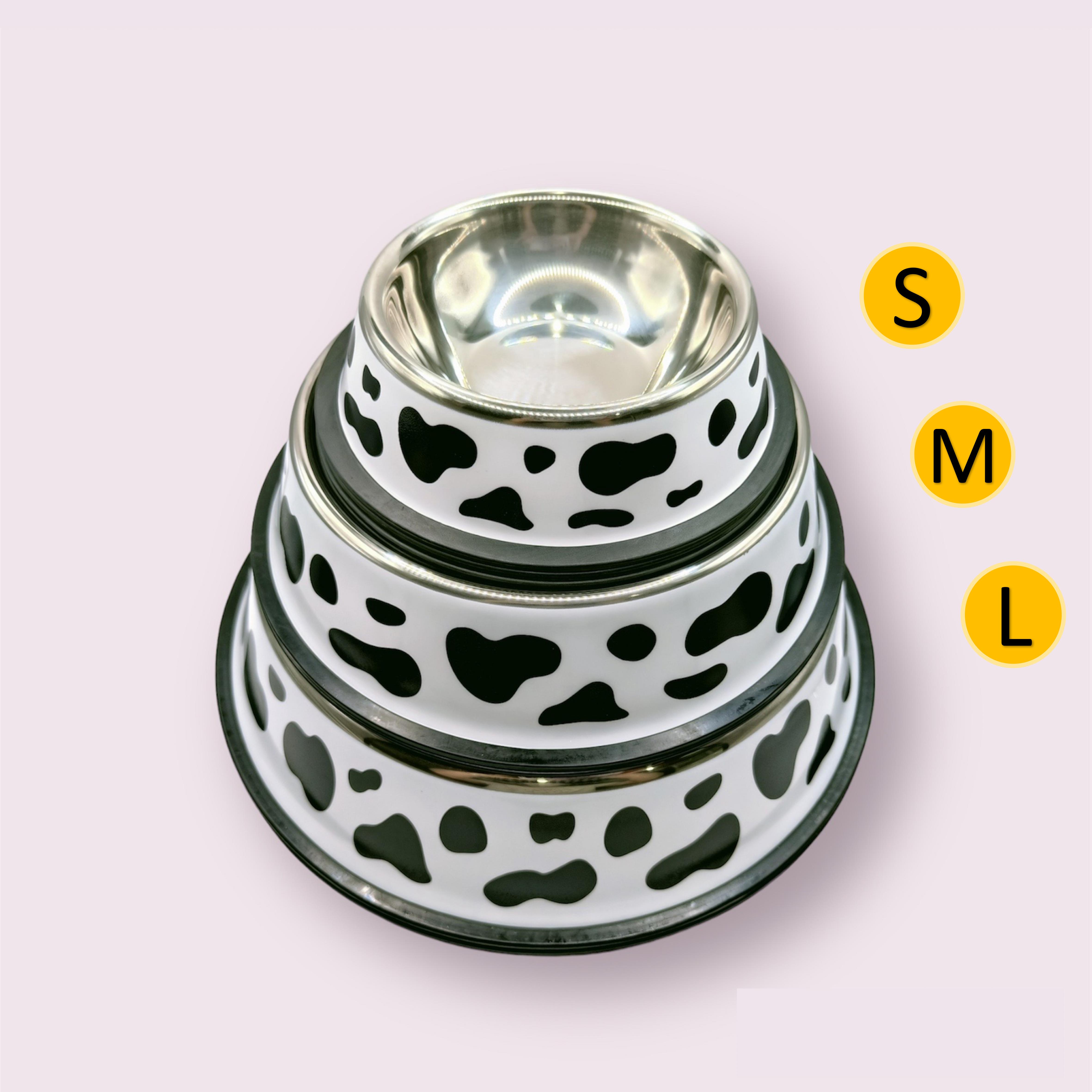 ✨Bát ăn thú cưng, bát ăn chó mèo hình bò sữa, chất liệu inox an toàn sử dụng cho vật nuôi. Bát có 3 kích thước 18cm, 26cm, 34cm. Bát ăn size nhỏ 18cm