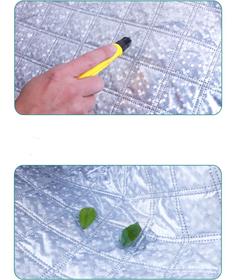 Bạt phủ xe ô tô 7 chỗ 3 lớp tráng nhôm cách nhiệt, chống nóng, chống thấm, chống bụi bẩn - Bạt phủ xe có mặt ngoài là chất liệu vải PEVA tráng nhôm phản