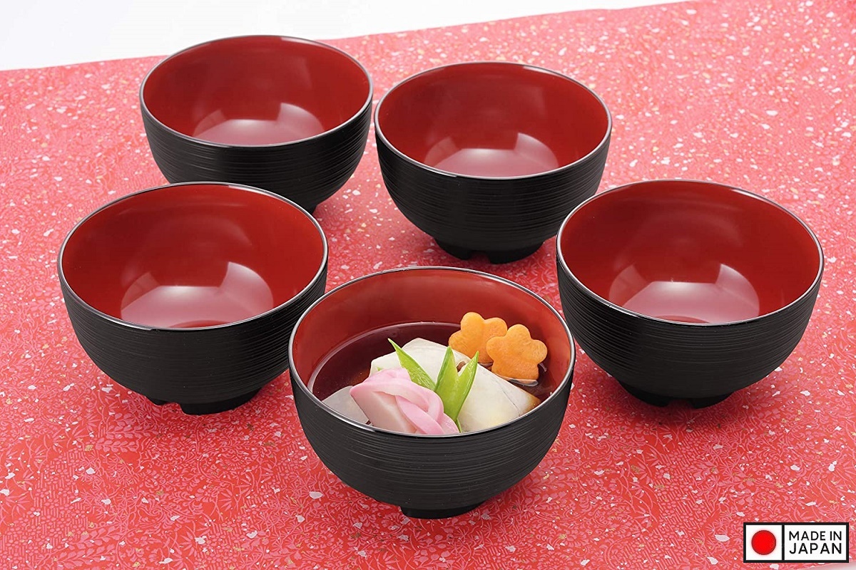 Bát tròn miệng rộng 500ml (Ø14.5×5.5cm) ■ Xuất xứ: Nhật Bản | MADE IN JAPAN ■ Kích thước:Ø145 x 55 Hmm ■ Màu sắc: Đen ~ lòng đỏ ■ Chất liệu: - Nhựa Polyester (PET) bề mặt phủ