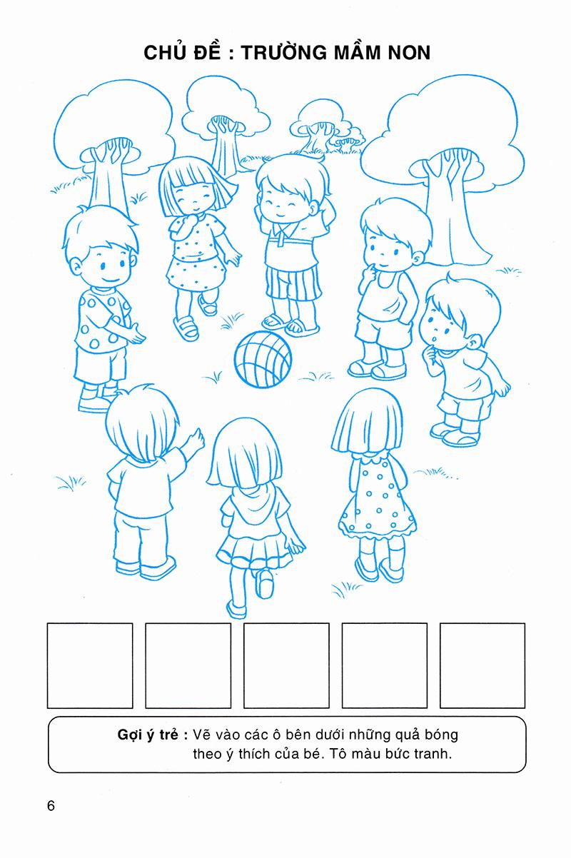Cuốn sách này được thiết kế theo từng chủ đề như , trường mầm non, cơ thể người, nghề nghiệp, thế giới động vật, thế giới thực vật, phong cảnh... và gợi ý thực hiện một cách rõ ràng, giúp trẻ hoạt động theo hướng tích cực, thể hiện tinh thần sáng tạo trong nét vẽ, tô màu, hoàn thiện hình, vẽ thêm hình...