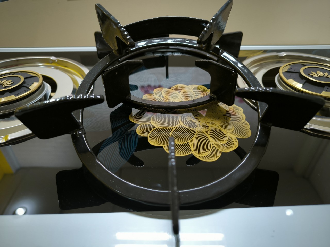 * Mặt kiếng cao cấp chịu lực, chịu nhiệt, thiết kế hoa văn sang trọng; - Thân bếp bằng inox, cao 100 mm; - Kiềng thép sơn tĩnh điện, có chắn gió; - Điếu loe