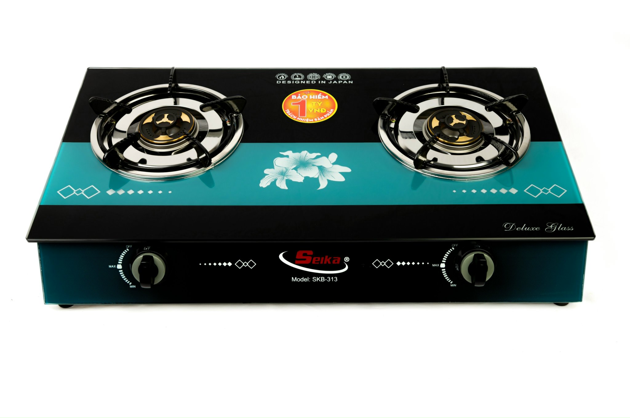 Bếp Gas Đôi Mặt Kính Seika(Sen Đồng)- Mặt kiếng cao cấp chịu lực, chịu nhiệt, thiết kế hoa văn sang trọng - Thân bếp làm bằng inox chống rỉ sét. - Kiềng thép sơn tĩnh
