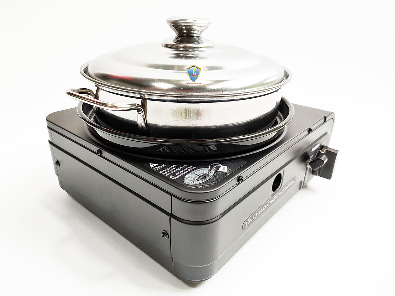 - Sử dụng vỉ nướng TEFLON TIÊU CHUẨN MỸ. Vỉ nướng được đúc bằng nhôm ADC12, có khả năng dẫn nhiệt nhanh, giúp tiết kiệm gas và thời gian. - NƯỚNG KHÔNG KHÉT. Kỹ thuật tiên tiến khống chế nhiệt độ của vỉ nướng không vượt quá 250 độ C. Đây là nhiệt độ hoàn hảo để thịt nướng được thơm ngon, không khét. - CHỐNG GIÓ SIÊU VIỆT. Đầu đốt được thiết kế nằm hoàn toàn bên trong bếp, giúp chống gió tuyệt đối. Bếp có thể sử dụng được trong nhà, ngoài trời, nơi có gió mạnh, vùng biển, hay nơi bão lũ. - SIÊU TIẾT KIỆM. Tối ưu hiệu suất đốt và tận dụng toàn bộ nhiệt lượng tỏa ra trong quá trình nấu. Một lon gas mới có thể sử dụng liên tục từ 3-5 giờ. NHỮNG LÝ DO ĐỂ MUA Bếp lẩu - nướng không khói đa năng Namilux NA-GS2821PF THAY VÌ BẾP CỒN Công suất mạnh 1.2kW/giờ, nấu nhanh sôi Đầu đốt nằm trong, cho phép sử dụng ngoài trời, nơi có gió mạnh Tiêu hao gas thấp; 1 lon gas có thể sử dụng liên tục từ 3-5 giờ Tính năng điều chỉnh ngọn lửa, giúp nấu ăn ngon và dễ dàng