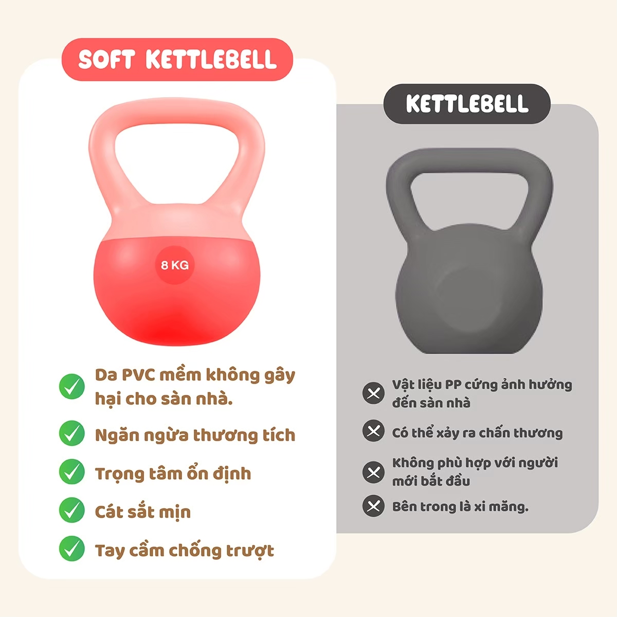 ✨BG Tạ Bình Q312 - 8kg Cao Su Mềm, chuông Ấm, Tạ Ấm