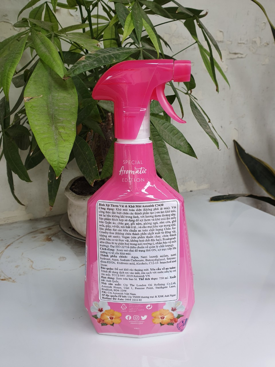 Mua tại TiktokBình xịt thơm vải và khử mùi Astonish C3430 PHIÊN BẢN ĐẶC BIỆT. Sản xuất 100% tại Anh Quốc theo công thức đặc biệt, với nguyên lý hoạt động là các phân tử ion khử mùi ( không phải dùng mùi của sản phẩm để át đi các mùi khác) mà do các hạt ion làm trung hoà và khử hoàn toàn các mùi hôi, mùi tanh, mùi ẩm mốc khó chịu, thay vào đó là không khí tự nhiên, đem lại cảm giác không gian thoáng mát trong lành. Sử dụng xịt hằng ngày để khử mùi trong xe hơi, phòng ngủ, chăn, ga trải giường, gối, nệm, quần áo, rèm cửa, giầy, vớ, tấ