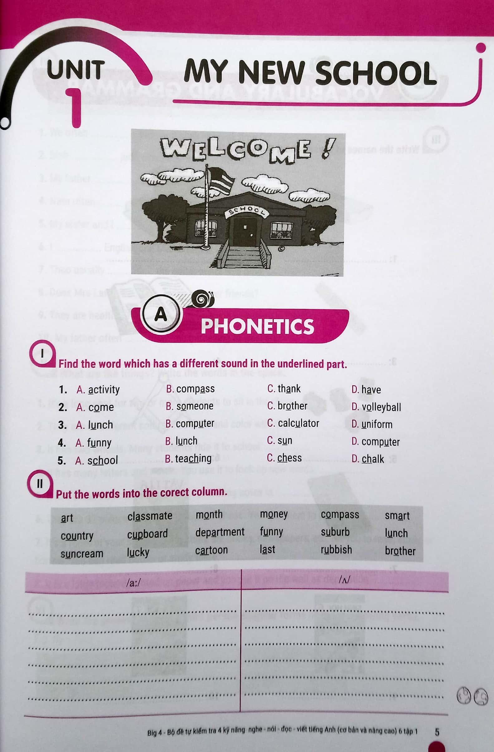 ✨Big 4 - Bộ Đề Tự Kiểm Tra 4 Kỹ Năng Nghe - Nói - Đọc - Viết Tiếng Anh 6 - Tập 1 (Cơ Bản Và Nâng Cao)